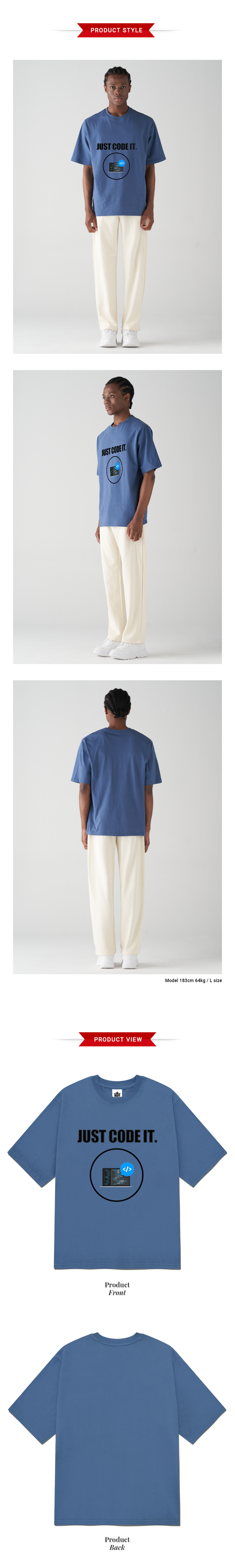 반팔티셔츠 20수(블루) 앞면 프린팅 요약정보 및 구매