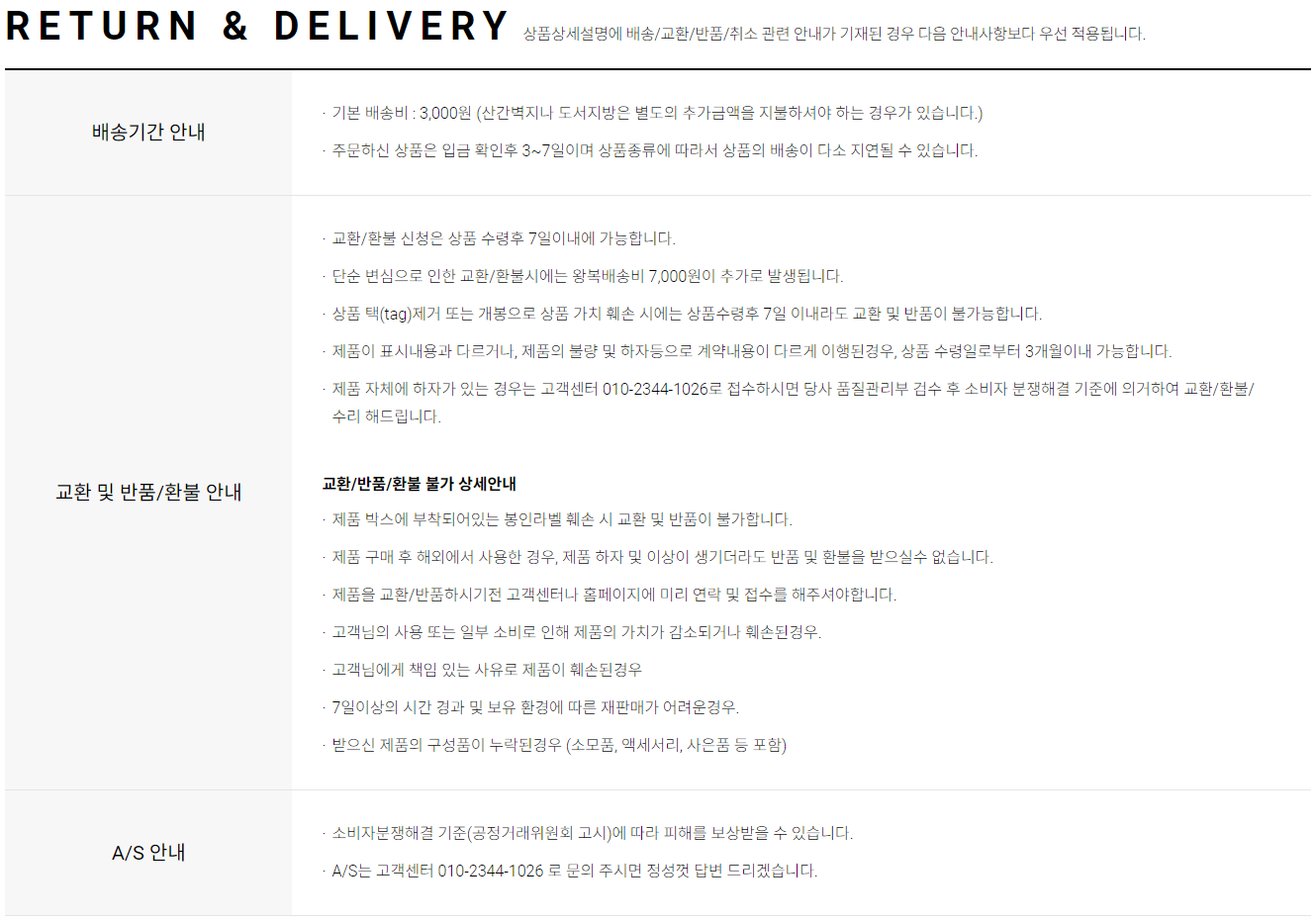 세탁방법 및 취급시 주의사항 상품페이지 참고